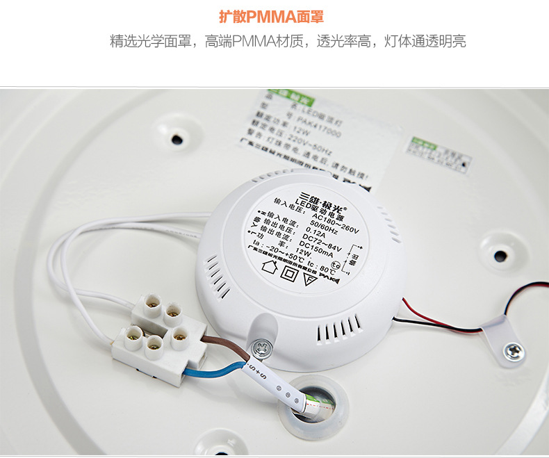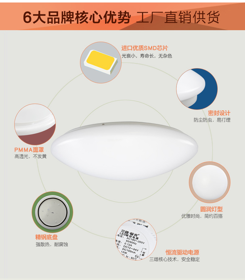 三雄极光led吸顶灯柔雅系列红外线人体声光控吸顶灯8W12W18W24W...